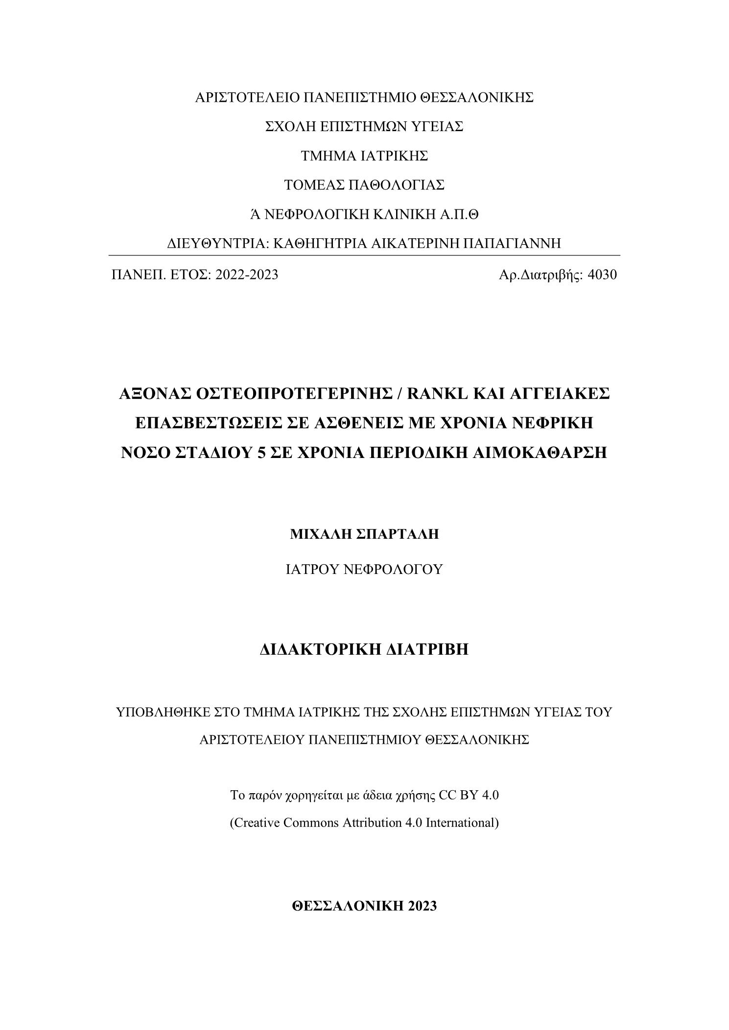 Παρά την εξέλιξη της ιατρικής τα τελευταία χρόνια και την γνώση που έχει αποκτηθεί, τα καρδιαγγειακά επεισόδια παραμένουν η κύρια αιτία νοσηρότητας και θνητότητας στους ασθενείς με χρόνια νεφρική νόσο, ιδίως σε αυτούς που βρίσκονται σε εξωνεφρική κάθαρση, στους οποίους παρατηρούνται σε σημαντικά μεγαλύτερο βαθμό απ’ ότι στον γενικό πληθυσμό, επασβεστώσεις των αγγείων καθώς και των καρδιακών βαλβίδων. Οι παρατηρούμενες αγγειακές επασβεστώσεις σε αυτούς τους ασθενείς είναι δύο μορφών, οι αθηροσκληρωτικές και οι αρτηριοσκληρυντικές. Στην παθογένεια των καρδιαγγειακών επασβεστώσεων εμπλέκονται οι παραδοσιακοί παράγοντες κινδύνου, όπως η ηλικία, η υπέρταση, ο σακχαρώδης διαβήτης, η δυσλιπιδαιμία και το κάπνισμα, αλλά και μη παραδοσιακοί παράγοντες, οι οποίοι σχετίζονται με την χρόνια νεφρική νόσο και το ουραιμικό περιβάλλον αυτών των ασθενών, όπως είναι οι διαταραχές των μετάλλων, η χρόνια φλεγμονή, το οξειδωτικό στρες, το μεγάλο χρονικό διάστημα στην αιμοκάθαρση και οι διαταραχές του οστικ ...