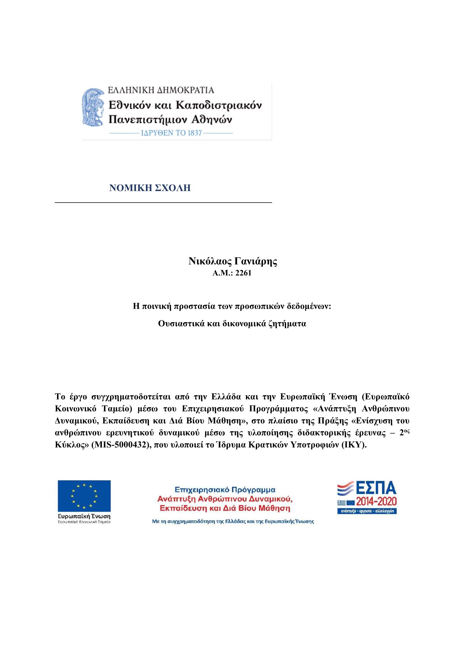 The dissertation approaches the protection of personal data through criminal law. Initially, the author lists the primary interventions of the European and Greek legislators in the field of personal data and presents the main criminal provisions. Subsequently, the author presents the protection of privacy through the specific subsections of the Criminal Code. The interpretation and historical development of these provisions is essential to understand the criminal provisions on data protection. Subsequently, the author analyses the main doctrinal views in Greek and international literature and case law in protecting personal data. The paper supports that informational self-determination (informationelle selbstbestimmung) should be considered the central doctrinal position for interpreting the relevant criminal provisions. Furthermore, the paper analyses de lege lata the central criminal provision of article 38 of Law 4624/2019, and the criminal provisions of Laws 3471/2006, 3917/2011, a ...