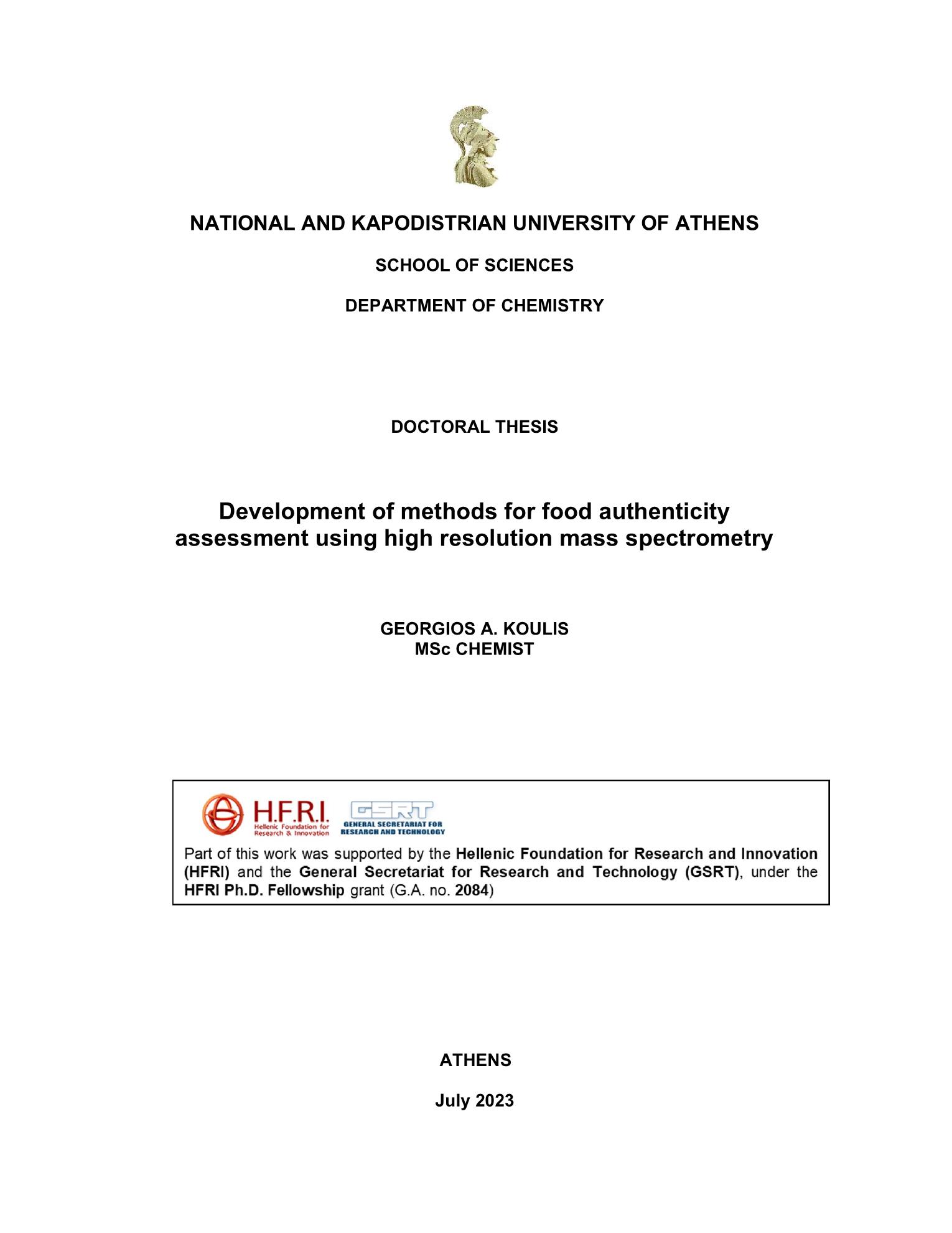 Ανάπτυξη μεθόδων για την αξιολόγηση της αυθεντικότητας των τροφίμων με χρήση φασματομετρίας μάζας υψηλής διακριτικής ικανότητας