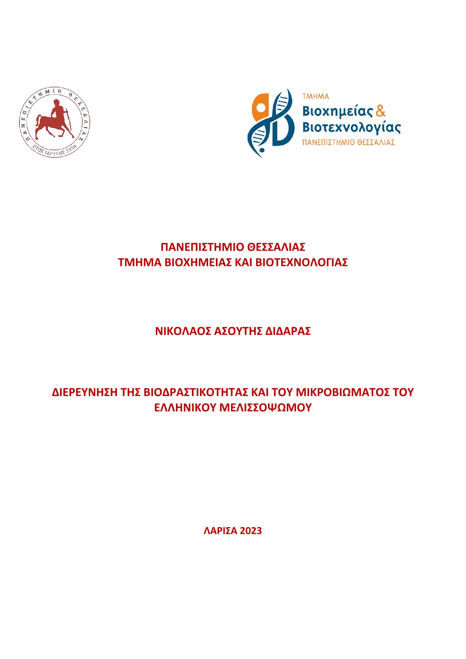 Το μελισσόψωμο (ΜΨ) είναι το μοναδικό ζυμωμένο προϊόν της κυψέλης και προκύπτει από τη γύρη που η μέλισσα συλλέγει και αποθηκεύει στην κηρήθρα εμβολιάζοντάς τη με μικροοργανισμούς του μικροβιώματος  της. Για τη μέλισσα αποτελεί την κύρια πηγή πρωτεϊνών, λιπών, βιταμινών και ιχνοστοιχείων και είναι πλούσιο σε φυτοχημικά όπως οι πολυφαινόλες. Η  ζύμωση συντηρεί και αυξάνει τη βιοδιαθεσιμότητα των θρεπτικών συστατικών της γύρης, το δε μικροβίωμα του ΜΨ θεωρείται ότι εμπλουτίζει το προϊόν με θρεπτικές και βιοενεργές ουσίες. Στην έρευνα αυτή 18 δείγματα ελληνικού ΜΨ καθώς  και 2 δείγματα γύρης μελισσών ΓΜ, ποικίλης βοτανικής και γεωγραφικής προέλευσης, αξιολογήθηκαν για τις αντιβακτηριακές τους ιδιότητες, την αντιοξειδωτική τους δράση, τη συνολική περιεκτικότητα σε φαινολικά (TPC) και τη συνολική περιεκτικότητα σε φλαβονοειδή (TFC). Τα αποτελέσματα έδειξαν ότι όλα τα δείγματα ασκούν ανασταλτική και τα περισσότερα από αυτά βακτηριοκτόνο δράση καθώς και σημαντική αντιοξειδωτική δράση, η οποία συσχετίζεται με τη βοτανική  προέλευση.Παράλληλα διερευνήθηκε και τεκμηριώθηκε η ικανότητα του ΜΨ να εκριζώνει  ή να παρεμποδίζει το σχηματισμό βιοϋμένων. Τα δείγματα ελέγχθηκαν εν συνεχεία για την in vitro αντι-ιική δράση τους έναντι του εντεροϊού D68 και του ιού της γρίπης Α (IAV) H1N1. Τα αποτελέσματα υποδηλώνουν ότι το ελληνικό ΜΨ και η ΓΜ εμφανίζουν ισχυρή αντι-ιική δράση έναντι και των δύο ιών, κάτι που για πρώτη φορά τεκμηριώνεται σε παγκόσμιο επίπεδο. Εξίσου σημαντικός στόχος της διατριβής αυτής ήταν να διερευνήσει το μικροβίωμα του ΜΨ, σε διάφορα στάδια ωρίμανσης, τόσο με μεταταξινομικές (NGS) όσο και  με καλλιεργητικές μεθόδους. Τα ευρήματα υποδεικνύουν ότι κατά την ωρίμανση του ΜΨ, η ποικιλότητα του μικροβιώματος κυμαίνεται δυναμικά καταλήγοντας σε μια μάλλον σταθερή δομή μικροβιακών κοινοτήτων στο ώριμο ΜΨ. Αξιολογήθηκε  επίσης η  βιοσυνθετική και αντιμικροβιακή δράση του μικροβιώματος και βάσει των αποτελεσμάτων έγινε τεχνητή ζύμωση γύρης με επιλεγμένους μικροοργανισμούς που  απομονώθηκαν από αυτό. Η τεχνητά ζυμωμένη γύρη εμφάνισε καλύτερη αντιμικροβιακή και αντι-ιική δράση και είχε καλύτερη επίδραση στη βιωσιμότητα μελισσών που εκτρέφονται σε κλωβούς στο εργαστήριο από ότι το αρχικό δείγμα γύρης. Τέλος ελέγχθηκε το κατά πόσο τυχόν αλλαγές στη δομή και την αφθονία των μικροβιακών κοινοτήτων του ΜΨ και του εντέρου των μελισσών μπορούν να χρησιμεύσουν ως προγνωστικοί δείκτες για την επιβίωση ή μη των αποικιών μελισσών που εμφανίζουν προσβολή από Vairimorpha ceranae. Συνολικά, τα αποτελέσματα της μελέτης υποδεικνύουν ότι το ελληνικό ΜΨ αποτελεί λειτουργικό τρόφιμο με υψηλή βιοδραστικότητα και  μπορεί να χρησιμεύσει ως πηγή νέων αντιμικροβιακών ενώσεων, καινοτόμων τροφίμων και προβιοτικών σκευασμάτων για τη μέλισσα και για τον άνθρωπο.