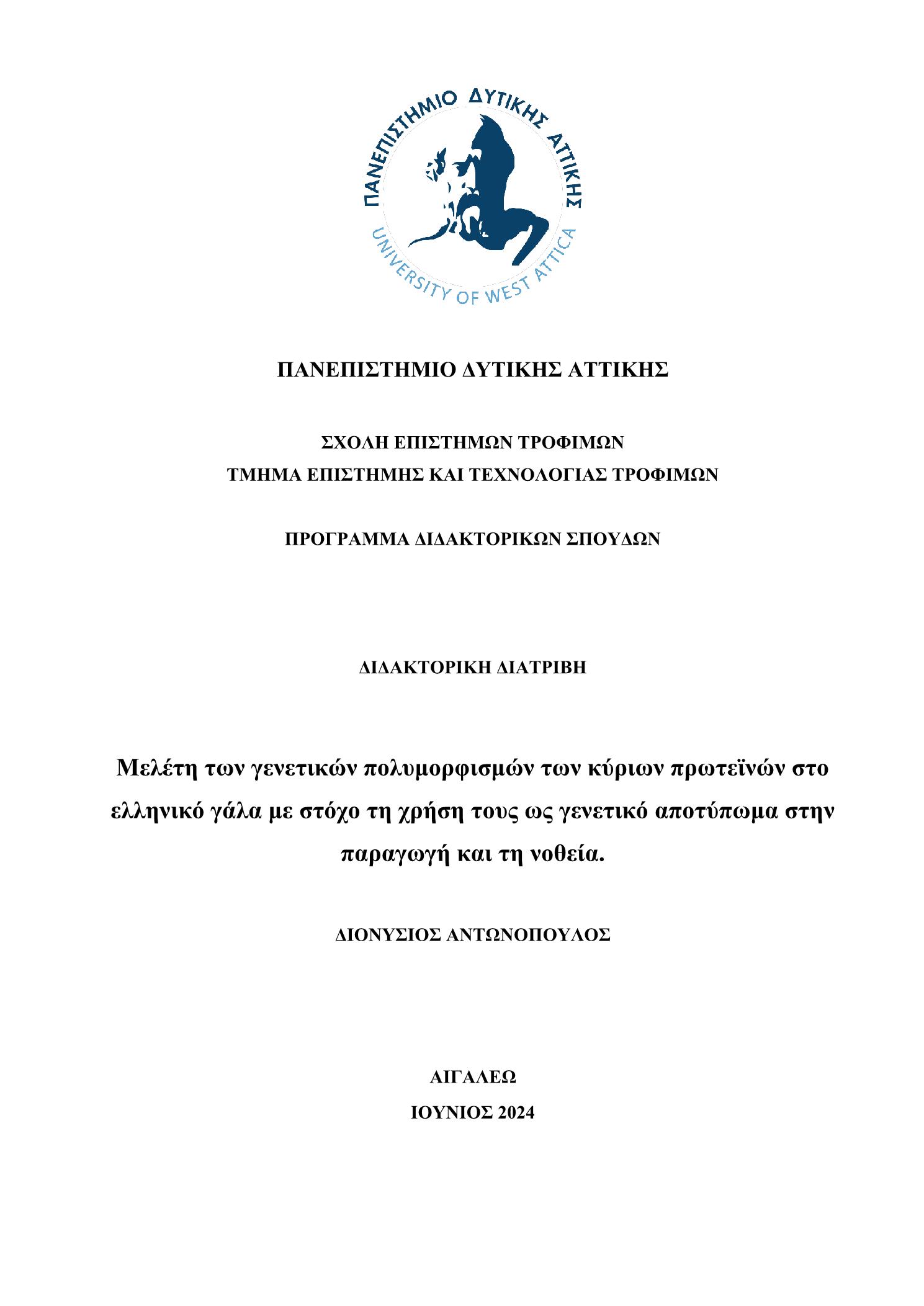 Η αξία του γάλακτος και παραγώγων του ως διατροφικά προϊόντα για τον άνθρωπο έχει από αρχαιοτάτων χρόνων αναγνωριστεί: από το θηλασμό των νεογνών ως και τη δημιουργία γαλακτοκομικών προϊόντων, το γάλα αποτελούσε ανέκαθεν μέρος της ανθρώπινης καθημερινότητας και ήταν συνυφασμένο με την ευμάρεια και τη μητρική φροντίδα, καθώς αποτελεί πηγή θρεπτικών ουσιών, ενέργειας και δομικών συστατικών για τον οργανισμό. Στο γάλα των μηρυκαστικών υπάρχουν έξι βασικοί τύποι πρωτεϊνών γάλακτος: η αS1-καζεΐνη (αS1-CN), η β-καζεΐνη (β-CN), η λακτοσφαιρίνη (β-LG), η α-λακτοαλβουμίνη (α-LA) η αS2-καζεΐνη (αS2-CN) και η Κ-Καζεϊνη(k-CN). Σε αυτά τα γονίδια εμφανίζονται μεταλλάξεις κατά τη διάρκεια των ετών, οι οποίες οδηγούν στην εμφάνιση πολλών αλληλόμορφων. Οι αλλαγές αυτές, που ονομάζονται πολυμορφισμοί, προκαλούνται από την αναδιάρθρωση των γονιδίων (αντικατάσταση ενός νουκλεοτιδίου με άλλο) και μπορεί να οδηγήσουν είτε στην τροποποίηση της έκφρασης των γονιδίων, είτε στην απενεργοποίηση της έκφρασης γον ...