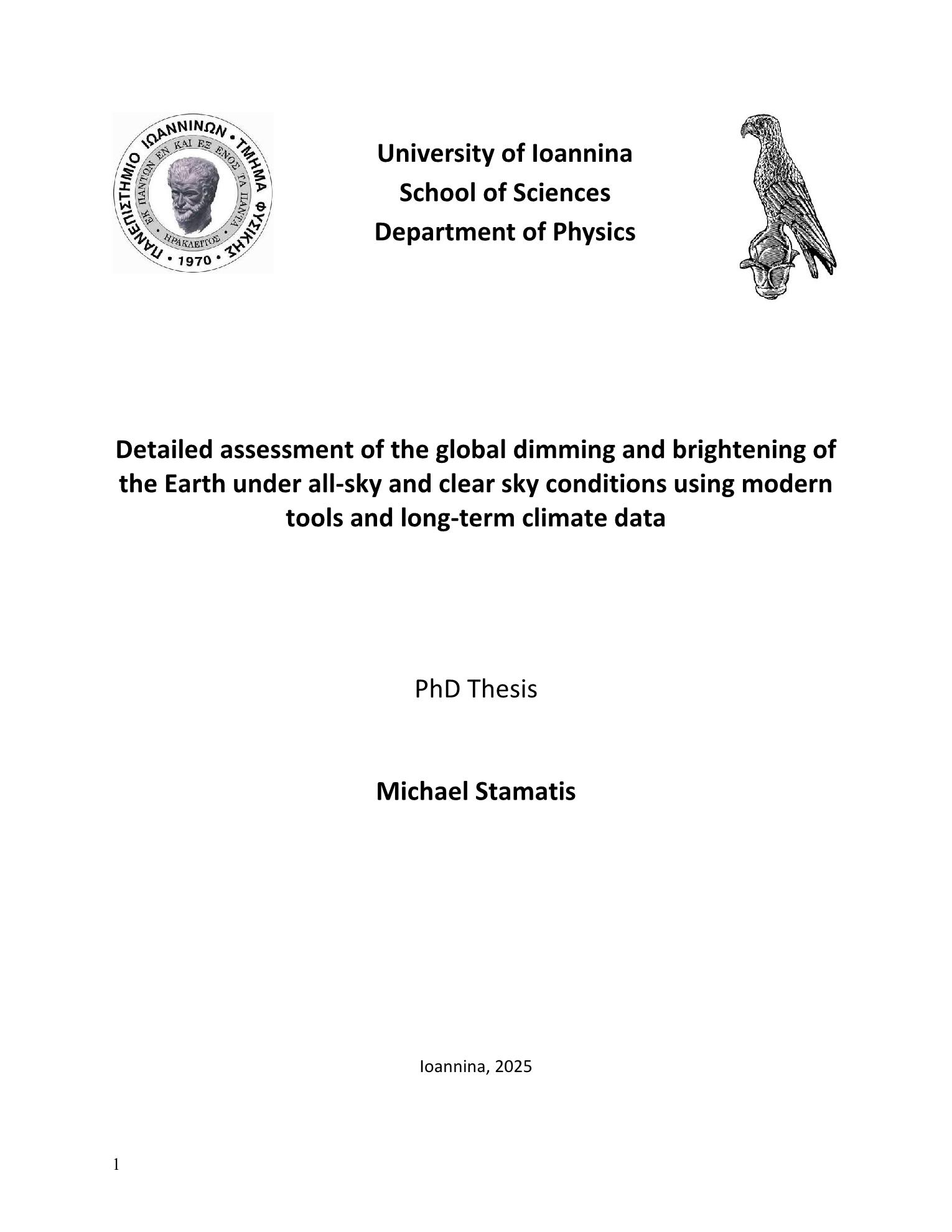 Η ηλιακή ακτινοβολία μικρού μήκους κύματος αποτελεί την κύρια εξωτερική πηγή ενέργειας της Γης, καθώς και την πρωταρχική και κυρίαρχη πηγή ενέργειας για το κλιματικό της σύστημα. Για το λόγο αυτό, οι διακυμάνσεις στην εισερχόμενη ηλιακή ακτινοβολία στην κορυφή της ατμόσφαιρας και στην επιφάνεια της Γης, μπορούν να έχουν σημαντικές επιπτώσεις στο κλίμα της Γης και στην ποιότητα ζωής στον πλανήτη μας. Πριν φτάσει στην επιφάνεια της Γης, η ηλιακή ακτινοβολία διασχίζει ολόκληρη την ατμόσφαιρα, αλληλεπιδρώντας με τα συστατικά της, όπως τα νέφη, τα αερολύματα και τα αέρια. Η ποσότητα της ηλιακής ενέργειας που φτάνει στο έδαφος αποτελεί μόνο ένα μέρος της ακτινοβολίας που εισέρχεται στην ατμόσφαιρα, καθώς πολλά ατμοσφαιρικά στοιχεία απορροφούν ή/και σκεδάζουν την ακτινοβολία σε συγκεκριμένες περιοχές μήκους κύματος. Κατά μέσον όρο, 340 Wm⁻² εισέρχονται στην ατμόσφαιρα της Γης σε παγκόσμια κλίμακα και μέση ετήσια βάση, ωστόσο μόνο περίπου 185 Wm⁻² φτάνουν στην επιφάνεια της Γης (Wild et al., 2013). Ωστόσο, οι τιμές αυτές, που αντιπροσωπεύουν παγκόσμιους και ετήσιους μέσους όρους, μεταβάλλονται σημαντικά ανάλογα με τη γεωγραφική θέση, την εποχή και το έτος και, φυσικά, το ημερήσιο κύκλο. Οι πολυδεκαετείς διακυμάνσεις της ηλιακής ακτινοβολίας που φθάνει στην επιφάνεια της Γης (SSR) έχουν σημαντικές επιπτώσεις σε πολλές σημαντικές περιβαλλοντικές διεργασίες, καθώς και σε πολυάριθμες πρακτικές εφαρμογές, όπως η παραγωγή ηλιακής ενέργειας, η γεωργική παραγωγή και η ανθρώπινη υγεία, δεδομένου ότι η διαθεσιμότητα του ηλιακού φωτός είναι απαραίτητη για κάθε οικοσύστημα και την ύπαρξη της ζωής εν γένει. Παρά ταύτα, τα αίτια αυτών των διακυμάνσεων εξακολουθούν να αποτελούν αντικείμενο συζήτησης και να στερούνται σαφών αποδείξεων. Στην πραγματικότητα, η SSR μεταβάλλεται σημαντικά κατά τη διάρκεια δεκαετιών, σύμφωνα τόσο με μια σειρά μελετών που εξετάζουν καταγραφές της SSR σε ευρέως διάσπαρτες τοποθεσίες παρατήρησης (π.χ. Wang et al., 2012; Wild 2009, 2016, και αναφορές σε αυτές) όσο και με μελέτες μοντελοποίησης με παγκόσμια κάλυψη με χρήση σύγχρονων δορυφορικών προϊόντων (π.χ. Pinker et al., 2005; Hatzianastassiou et al., 2012). Οι πρώτες ενδείξεις μείωσης της SSR από τη δεκαετία του 1950 καταγράφηκαν στα τέλη της δεκαετίας του 1980 και στις αρχές της δεκαετίας του 1990 σε πολυάριθμες τοποθεσίες (Ohmura and Lang, 1989; Stanhill and Moreshet, 1992). Το φαινόμενο αυτό απέκτησε στη συνέχεια ευρεία αναγνώριση και αναφέρθηκε ως "παγκόσμια σκίαση" ή global dimming (Stanhill and Cohen, 2001). Στις αρχές της δεκαετίας του 2000 συνειδητοποιήθηκε ότι η μείωση της SSR είχε σταματήσει και είχε, στην πραγματικότητα, αντιστραφεί σε πολλές από τις τοποθεσίες παρατήρησης από τη δεκαετία του 1980 - ένα φαινόμενο γνωστό ως "παγκόσμια λάμπρυνση" ή global brightening (Wild et al., 2005), δηλαδή η SSR άρχισε να αυξάνεται. Το φαινόμενο λοιπόν της αύξησης και μείωσης της SSR ονομάστηκε παγκόσμια σκίαση και λάμπρυνση ή global dimming and brightening (GDB). Στη συνέχεια, στην πρώτη δεκαετία του 21ου αιώνα παρατηρήθηκε μια εξομάλυνση της λάμπρυνσης ή ακόμη και μια ασθενής σκίαση, η οποία συνοδεύτηκε από μια λάμπρυνση κατά τη διάρκεια της δεκαετίας του 2010 (Wild, 2016, Hatzianastassiou et al., 2020; Stamatis et al., 2022, 2023). Σύμφωνα με διάφορες μελέτες (π.χ. Hatzianastassiou et al., 2005; Pfeifroth et al., 2018; Pinker et al., 2005, Posselt et al., 2014; Sanchez-Lorenzo et al., 2017), τα προϊόντα που προέρχονται από δορυφόρους έχουν επίσης δείξει τάσεις SSR από τα μέσα της δεκαετίας του '80. Οι μεταβολ