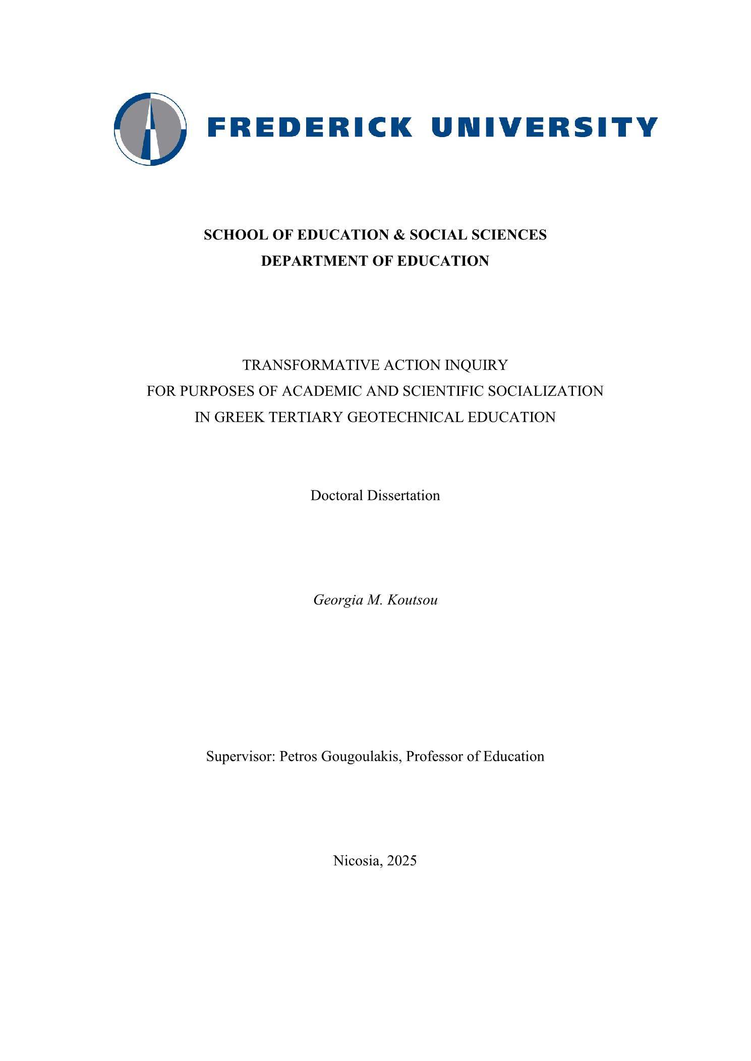 Μετασχηματίζουσα έρευνα δράσης για σκοπούς ακαδημαϊκής και επιστημονικής κοινωνικοποίησης στην Ελληνική τριτοβάθμια γεωτεχνική εκπαίδευση
